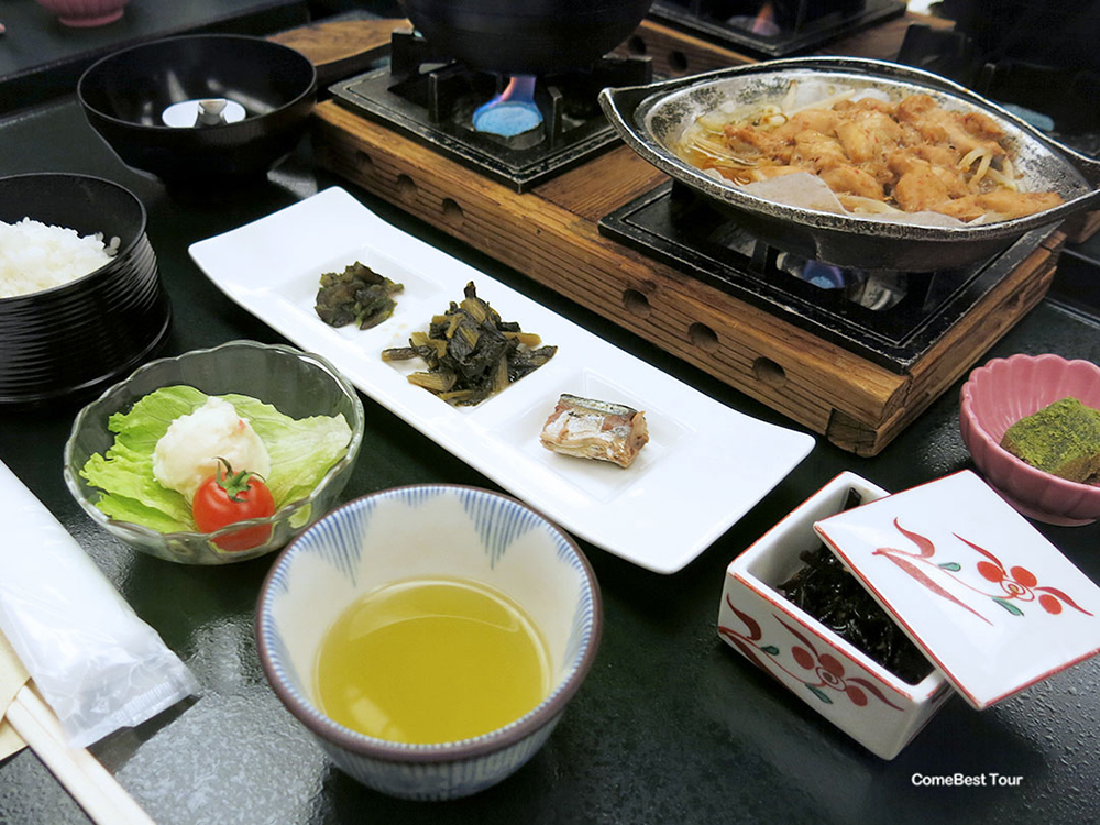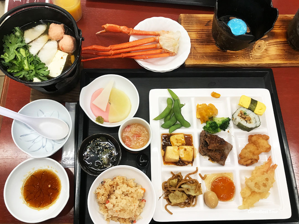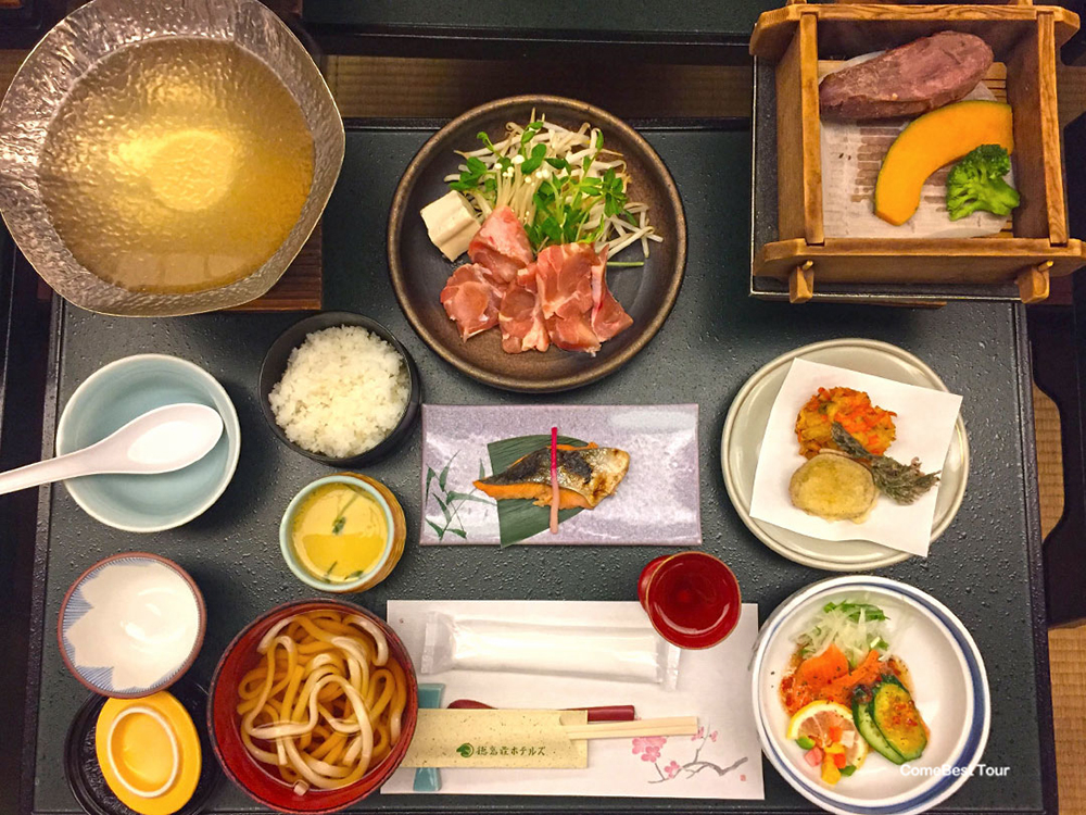 這趟6天五夜的行程,有3個晚上都是入住溫泉飯店,話說一般日本溫泉飯店都是有點歷史的,雖然沒有新穎的設計裝潢,但樸實懷舊的日式風情才是王道啊!況且在旅途之後好好泡個溫泉,舒舒服服不趕時間的享用晚餐,真是跟團極難得的體驗,而出國就是要吃當地美食的我,對於這次完全沒有出現”中式合菜”或奇奇怪怪的”異國”料理也十分滿意。