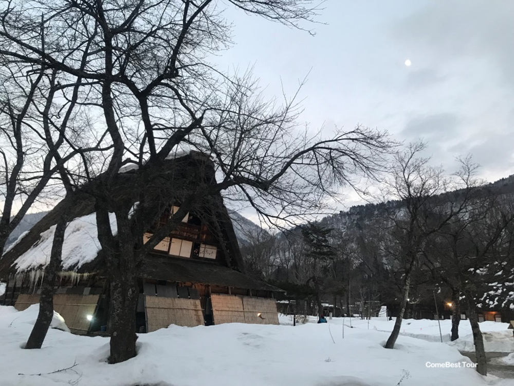 白川鄉的房子上面沒什麼積雪 有點可惜