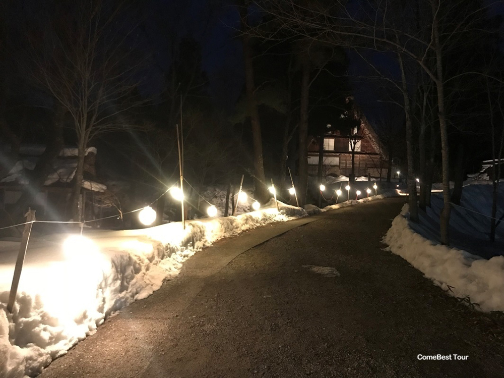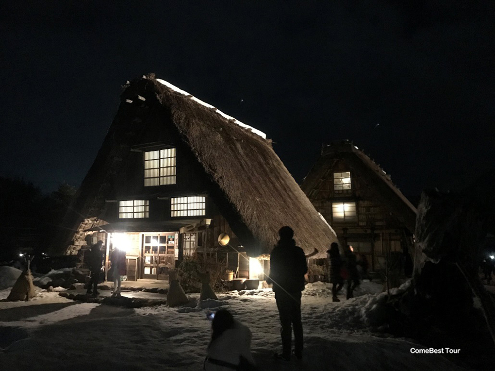 覺得白川鄉的夜晚 很有過年的氣氛 好像回到阿公阿嬤家 晚上大家出來玩的感覺
