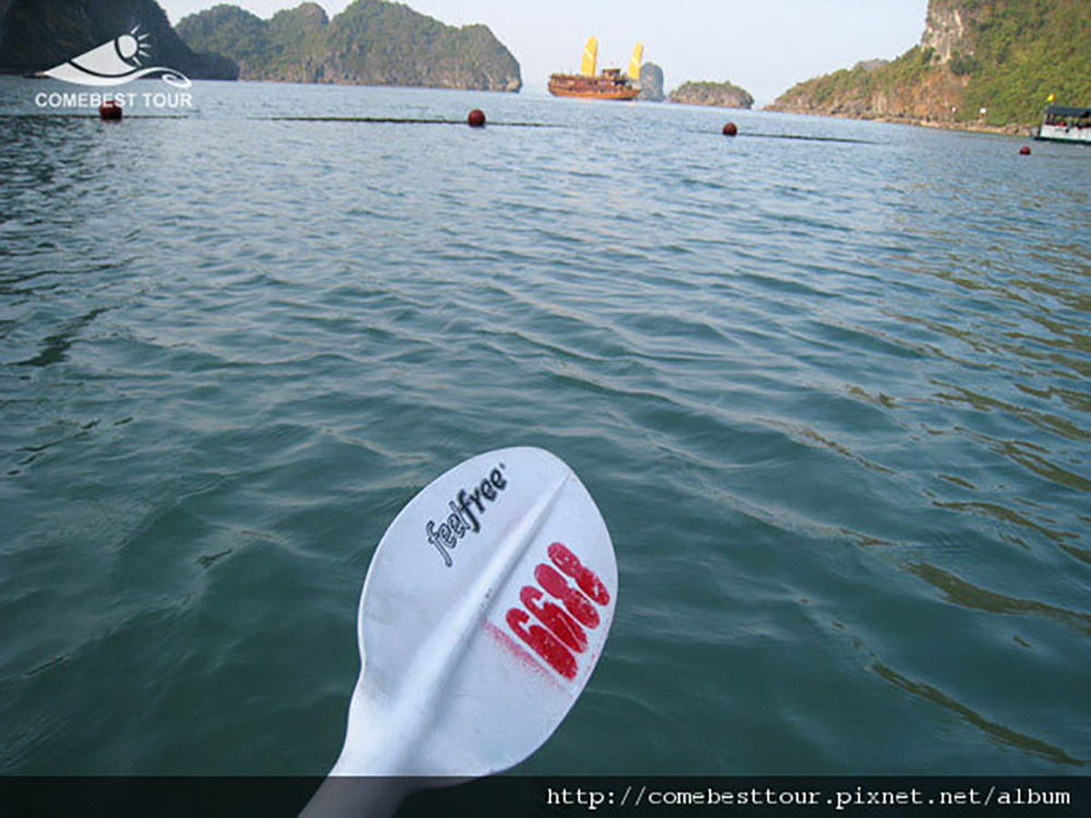 由於生態保護的立場~[天外天]是不能有任何機器引擎船隻進入的~只能在轉乘站改搭人力竹筏~而天堂號的貴賓們則還可以選擇是否要試試雙人獨木舟喔!