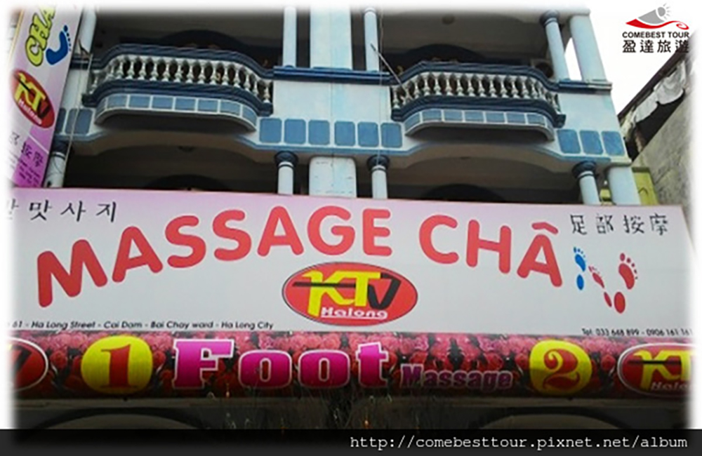第二站,我們到『Ti Top島』,在這拍了團體照,雖然樓梯很陡,但心想都來了當然要攻頂阿,上面的景色真的還不錯,一個個獨立的小島,結束Ti Top島後,再搭著遊艇回到郵輪上享用中餐。在郵輪上吃午餐,船上幾乎都台灣跟韓國人,船上有駐唱歌手唱歌,搭配自助式Buffet,真是一大享受,駐唱歌手唱著台語歌&韓國歌,還不錯聽,吃飽後,小睡了一會兒。接著是我最期待的按摩,越南這邊的按摩店都叫KTV,按摩90分鐘,一開始要先用藥水泡腳,快結束時手碰到隔壁男生的手,按摩小妹把我倆手牽在一起,說:我愛你,蠻有趣的,按摩完還挺舒服的。按摩完,到皇家海岸樂園,看越南國寶級的『水上木偶戲』,表演的是越南的傳統生活方式,也讓我了解了許多。