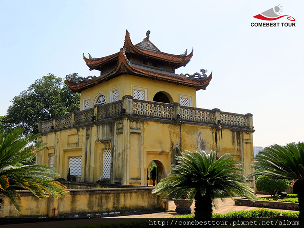 河內著名的地標「昇龍皇城」,李朝、陳朝、後黎朝曾先後建城於此,距今已有1000年歷史。正黃色的雄偉建築,一幢幢矗立皇城中,極具規劃之妙,也富含歷史和文化性,因此被聯合國教科文組織指定為文化遺產。登上五門樓可全景俯瞰廣場和城中錯落有致的門樓,遠方的軍事博物館旗塔也映在眼簾。