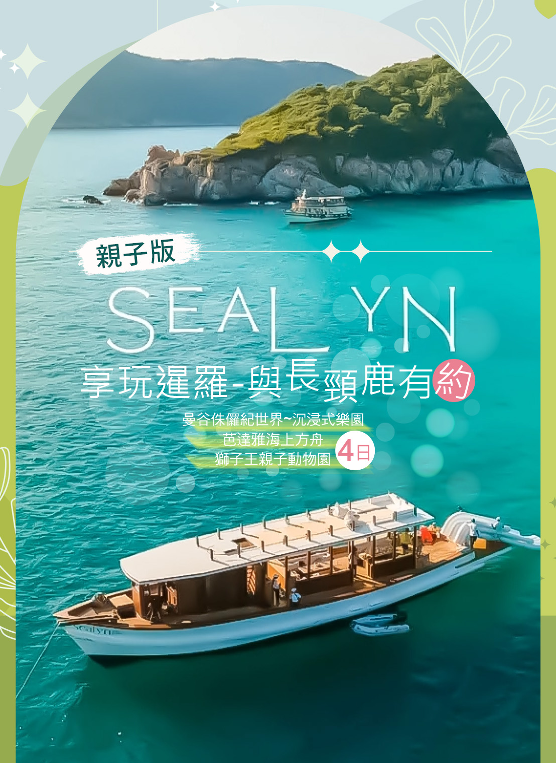 萬馬奔騰.盈達報喜【享玩暹羅親子版-長頸鹿有約】芭達雅海上方舟.獅子王動物園+侏儸紀沉浸式樂園 4日(無購物)(含稅險)