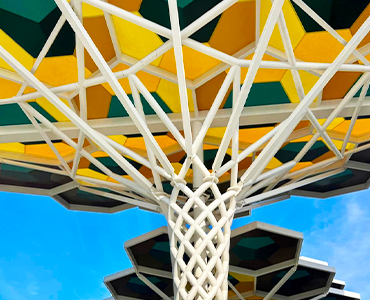 【淡武廊Supertree street】安排此裝置藝術,傘狀的造型成為淡武廊的地標。