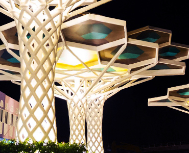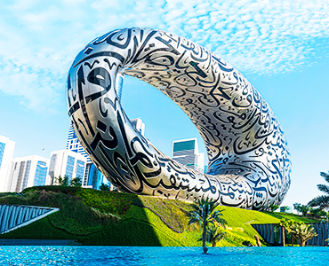 杜拜的未來博物館 Museum of the Future,以太空探索與永續發展為主題的博物館,特別是機器人和人工智慧領域。其標誌性的圓環狀建築由鋼鐵和玻璃構成,象徵著人類的無限可能,透過沉浸式體驗、互動裝置和主題展覽,引導參觀者探索未來的生活樣貌。※展覽內容以當期展出主※