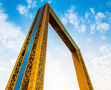 【黃金相框Dubai Frame】被譽為「世界上最大的相框」,這座高達150公尺、寬93公尺的巨型結構,外觀閃耀著金色的光芒,象徵著杜拜從過去走向未來的輝煌轉變。建築的設計理念巧妙,一邊框住了「老杜拜」的歷史景觀,如德拉舊城區和杜拜河,而另一邊則框住了「新杜拜」的現代化天際線,包括哈里發塔和豪華高樓群。相框內可以搭乘透明的觀景電梯直達頂部,在玻璃步道上俯瞰這兩種截然不同的城市面貌,感受新舊交織的獨特魅力。杜拜黃金相框不僅是拍照打卡的熱門景點,更是一座展示杜拜發展歷程的紀念碑。