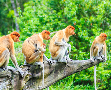 婆羅洲是長鼻猴主要棲息地,並受保育,將帶領您至紅樹林帶,尋找長鼻猴的可愛蹤影! 長鼻猴背部為栗褐色腹部黃白偏灰,腳略有蹼擅游泳。主要在日間活動樹上為他們主要的生活圈,主食為葉子,也吃花、果實,但因為特殊消化關係,不愛甜!