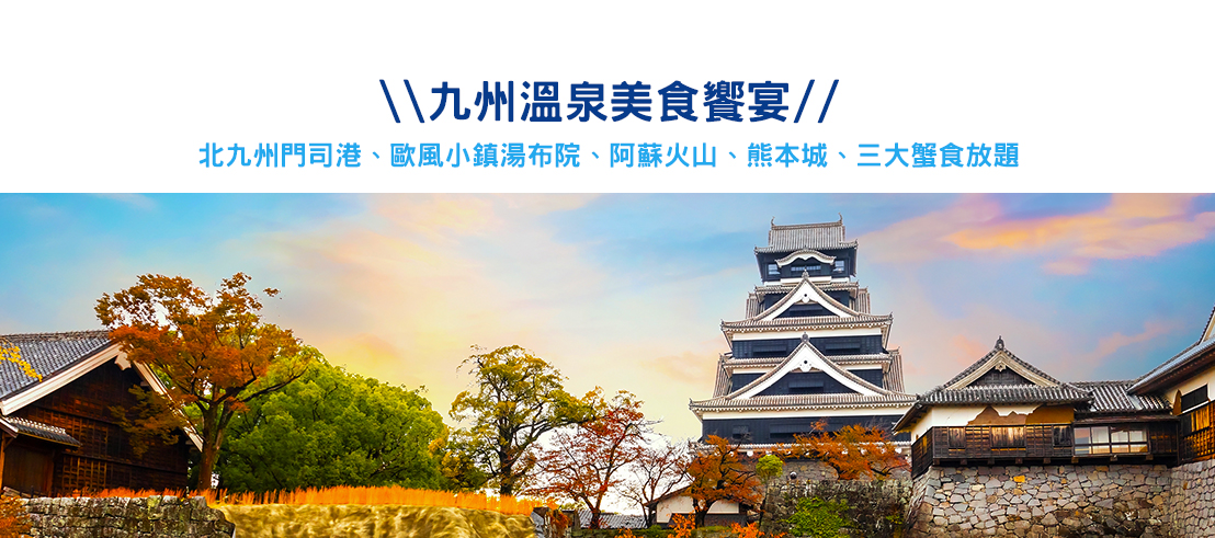 2026/05/10(日) | 桃園國際機場出發 【珍愛九州溫泉美食饗宴五日】北九州門司港.歐風小鎮湯布院.阿蘇火山.熊本城.三大蟹食放題機位 20 候補0 已售0 可售19※凡報名參團貴賓(嬰兒、小孩不佔除外)贈送日本五日上網網卡 |
