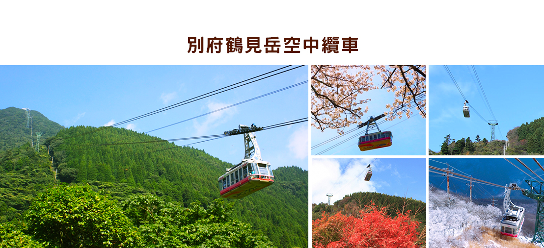 阿蘇九住國立公園內的近鐵別府空中索道,在大分縣別府市的西部,連接鶴見岳山腳和山頂的西日本最大規模的空中索道。從海拔503米到1300米的山頂10分鐘的空中漫步令人興奮。在天氣晴朗的日子不用說高崎山,就連四國、中國地區的景色也一覽無遺。春可觀賞櫻花、杜鵑花,夏天有1000萬美金的夜景,秋天的紅葉,冬天的霧冰。四季各種美景令人神往。 在標高1375米的鶴見岳山頂,能瞭望到別府市街和別府灣等景色。