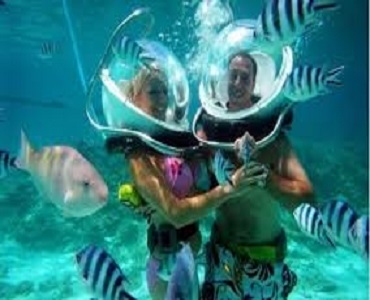 二、【海底漫步30分鐘】如果想欣賞海底美景,但是又沒辦法用嘴巴呼吸來潛水,那海底漫步肯定是很適合你的活動,帶著輸入空氣的頭盔,一步步的下到海底世界,撒點麵包享受一下被魚群包圍的快感,這肯定是你最特別的經驗。