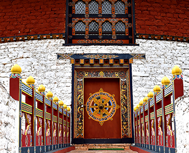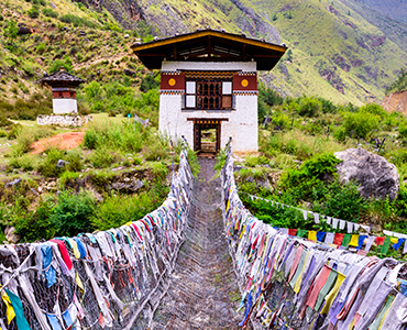 【多楚拉山口(Dochula Pass)】在不丹山口常以壯觀的藏式佛塔(Chorten)與五彩經幡作為標誌。由廷布前往普那卡中途會翻越海拔3,080公尺的多楚拉山口。天氣晴朗時,多楚拉山口可遠眺東喜馬拉雅山脈連綿雪峰,景色壯麗,是攝影與眺望的絕佳地點。