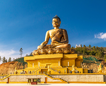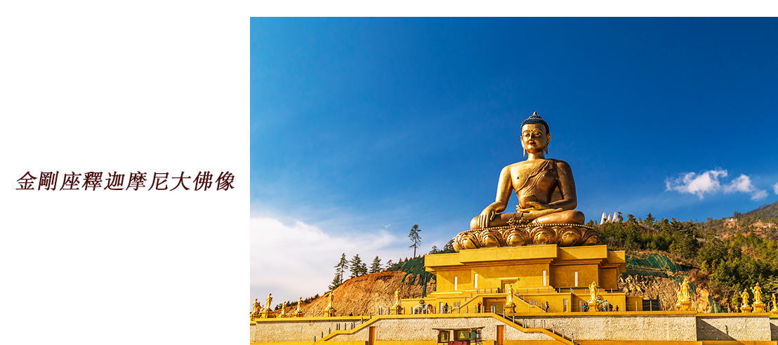 不丹金剛座釋迦牟尼大佛 Buddha Dordenma,位於首都廷布山頂,是一座高約51.5公尺的青銅鎏金坐佛。底座為禪修大殿,是象徵世界和平與繁榮的著名地標。