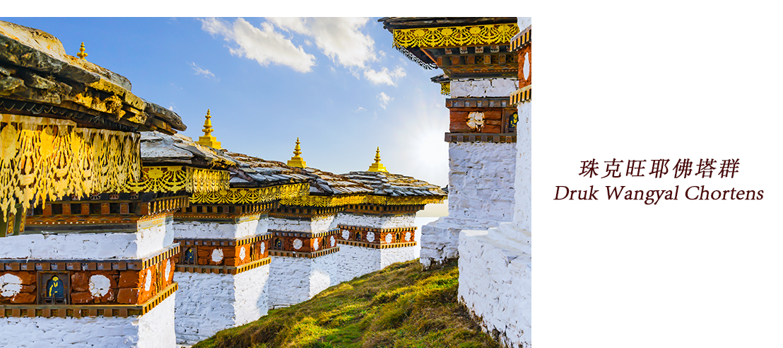 珠克旺耶佛塔群Druk Wangyal Chortens,位於不丹多楚拉山口。108座佛塔旨在慶祝不丹軍隊剿滅南部反政府武裝的勝利,同時祈求世界和平。
