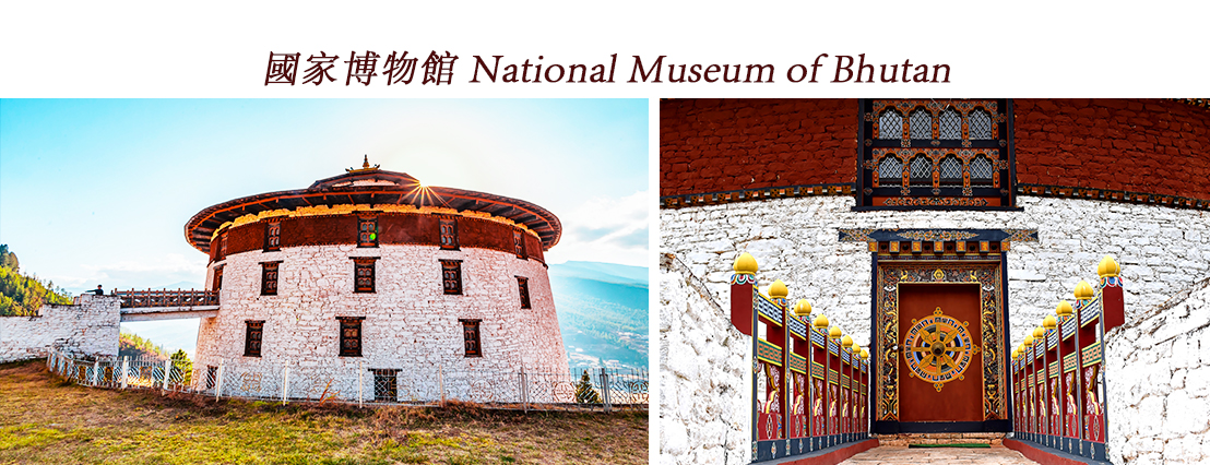不丹國家博物館,前身是17世紀的軍事瞭望塔「塔宗」(Ta Dzong),1968年改建為博物館。展示了不丹豐富的千年歷史、宗教唐卡、古老文物與傳統服飾等不丹珍貴文化。