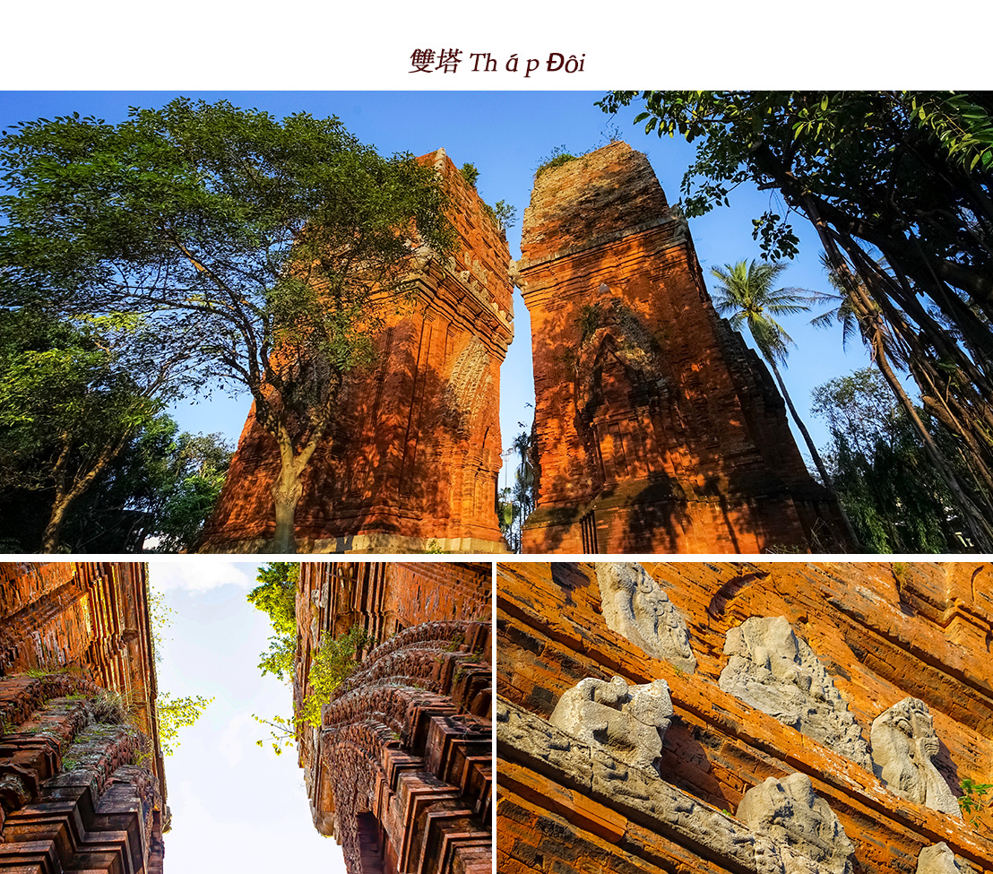 雙塔(Tháp Đôi)位於越南歸仁市區,是保存完好的占婆王朝古蹟。建於12至13世紀,兩座紅磚高塔並立而建,高大莊嚴,牆面雕刻有神祇與花紋圖案,展現濃厚的印度教藝術特色。雙塔不僅是研究占婆文化的重要遺跡,也是遊客探索古代建築與宗教歷史的理想去處。