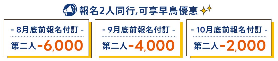 ※ 指定全程單人房,需另補 NT$10,000/位。