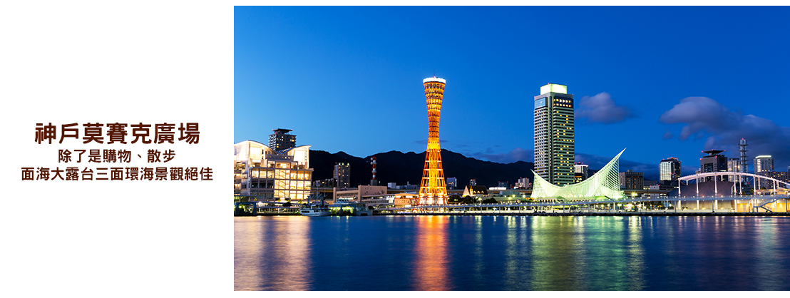 神戶莫賽克廣場,可說是神戶的台場,臨海樂園、戶外購物商場,彙集了時尚服飾、美食名產、雜貨小物和娛樂消遣等。視野也因三面環海所以景觀絕佳!漫步絢麗港都感受歐風香頌風情,是神戶約會聖地。