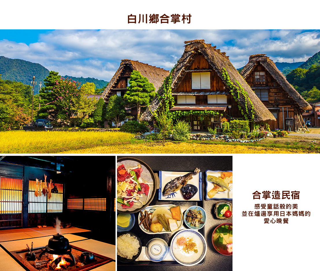 ※ 指定3晚單人房(合掌村當晚無法指定除外),需另補 NT$10,000/位。