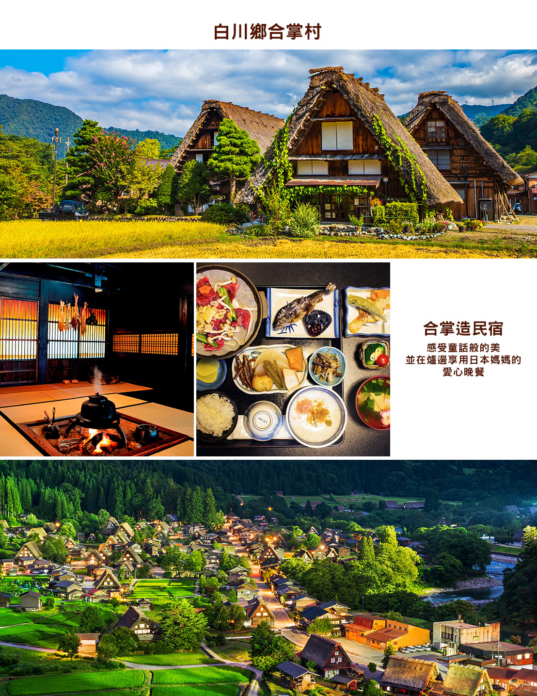 ※ 本行程為體驗入住白川鄉‧日式民宿旅館及融入當地村民的生活環境,均無單人房型,故恕不接待單人報名,敬請見諒。